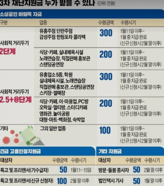 3차 재난지원금 소상공인 버팀목자금 대상은?