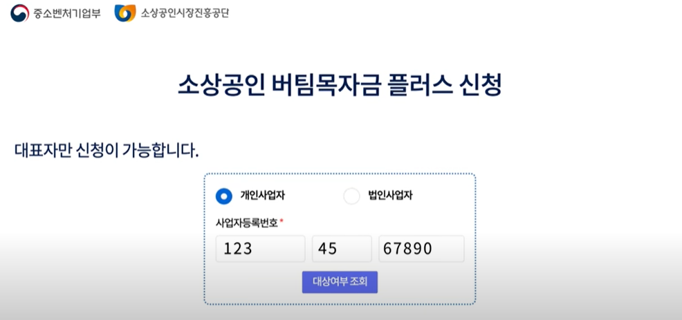 소상공인 버팀목자금 플러스 소개, 신청하기, 신청결과 확인 등