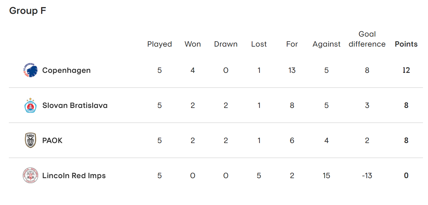 G조에서는 2등을 하여 비테세와 동정인 꼴이 됬다.