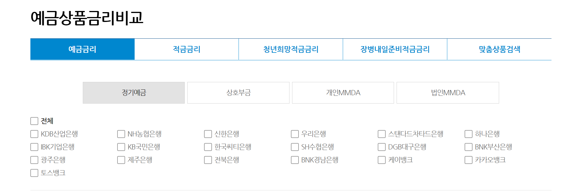 금융상품정보, 금리/수수료 비교공시, 금융서비스정보, 소비자정보, 금융교육