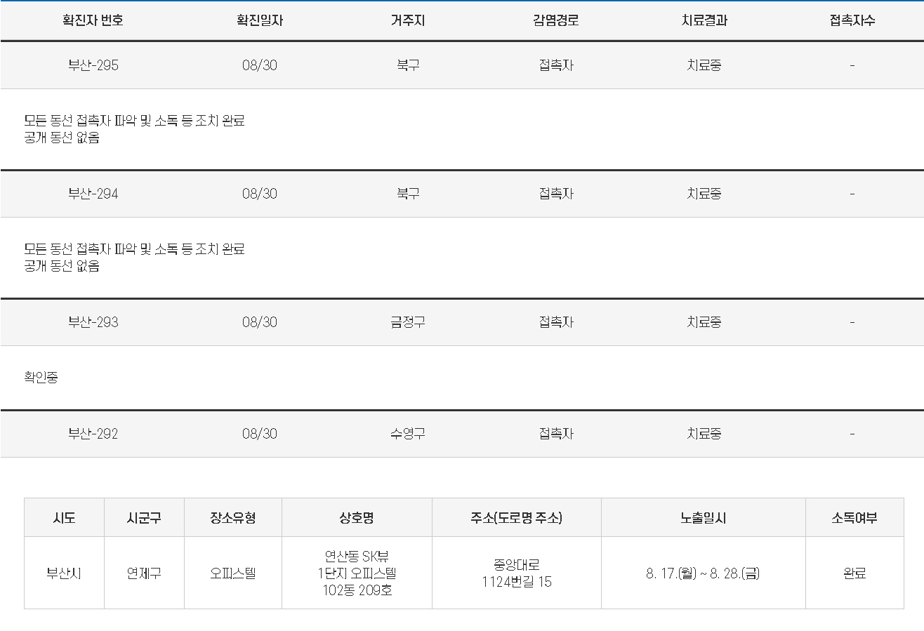 8.30 부산코로나확진자 확진된 4명은 모든 동선 접촉자 파악 및 소독 조치가 완료되었다고 하네요.
