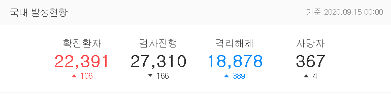 위의 홈페이지에 접속하시면 실시간 추가 확진자 숫자를 파악할 수 있습니다.