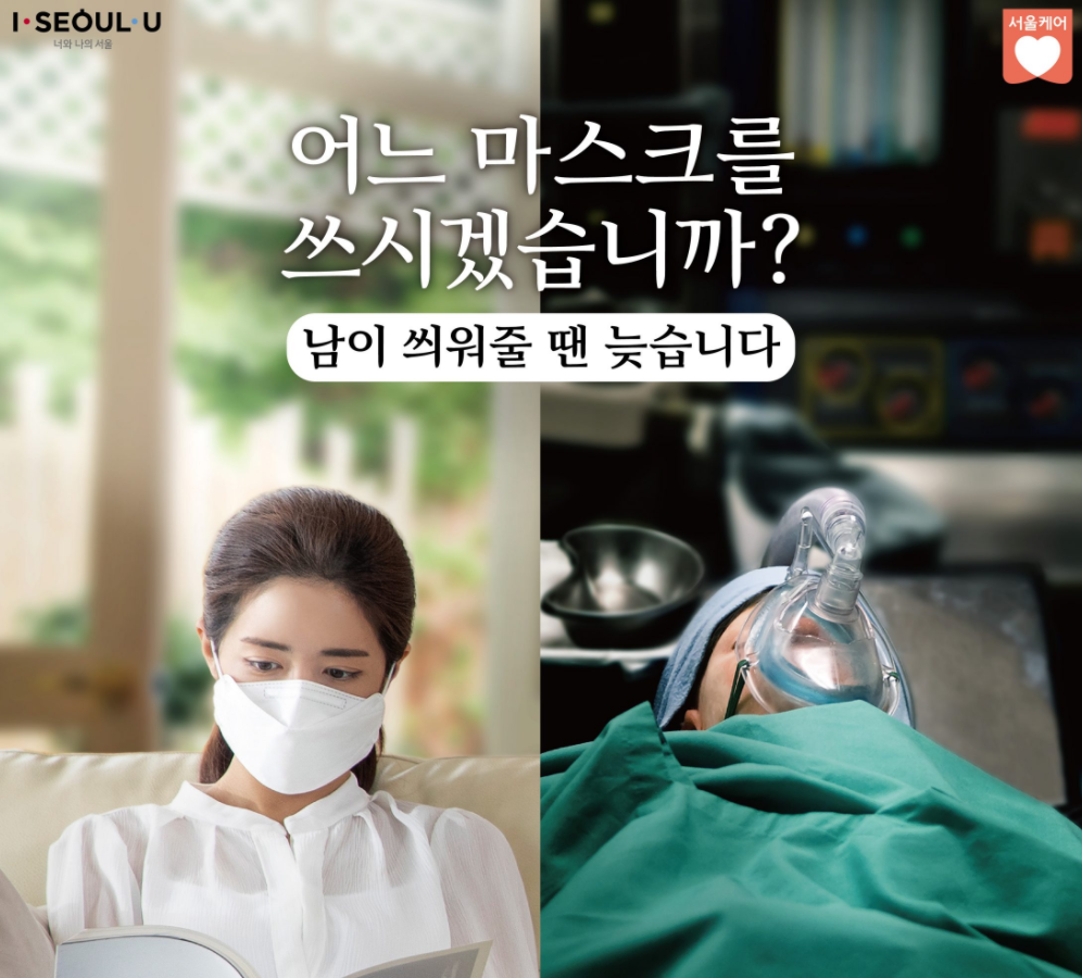 < 서울 코로나 확진자 관련 생활 속 거리 두기 실천지침: 마스크 착용 >