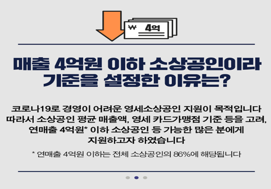 3. 올해 1~5월 창업을 진행하여 지난해 매출이 없는 경우, 올해 6월부터 3개월간의 매출을 기준으로 하여 연간 환산매출액이 4억원 이하이면서 8월 매출액이 6~7월보다 감소한 경우에도 지금 가능.