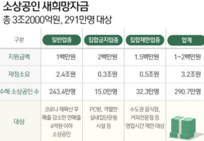 2. 집합금지 대상 소상공인인 경우에는 매출 규모와 관계없이 : 200만원