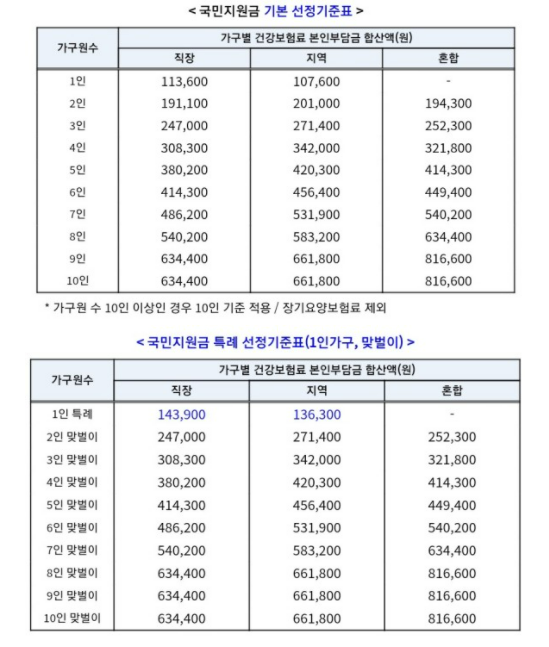 이번 코로나 상생 국민 지원금을 받기 위해서는 연소득 조건 외에도 건강보험료 합산액을 확인한다고 합니다. 대부분 연소득 만으로는 정확하게 얼마의 소득이 있는지 알기 어렵기 때문에 건강보험료 금액을 보는 것 같습니다. 아래에 제시된 건강보험료 본인부담금 이하에 해당하는 경우 지급받으실 수 있습니다.