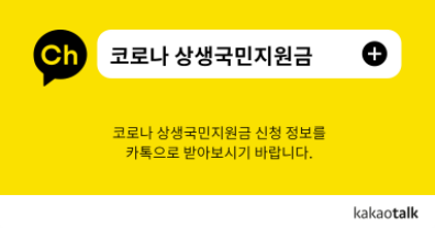 코로나 상생 국민 지원금 신청 관련해서는 아래의 카카오톡으로 최신 알림 서비스를 받으실 수 있습니다. 아래를 통해서 가장 빠르게 소식을 알림으로 받아보시길 바라겠습니다.
